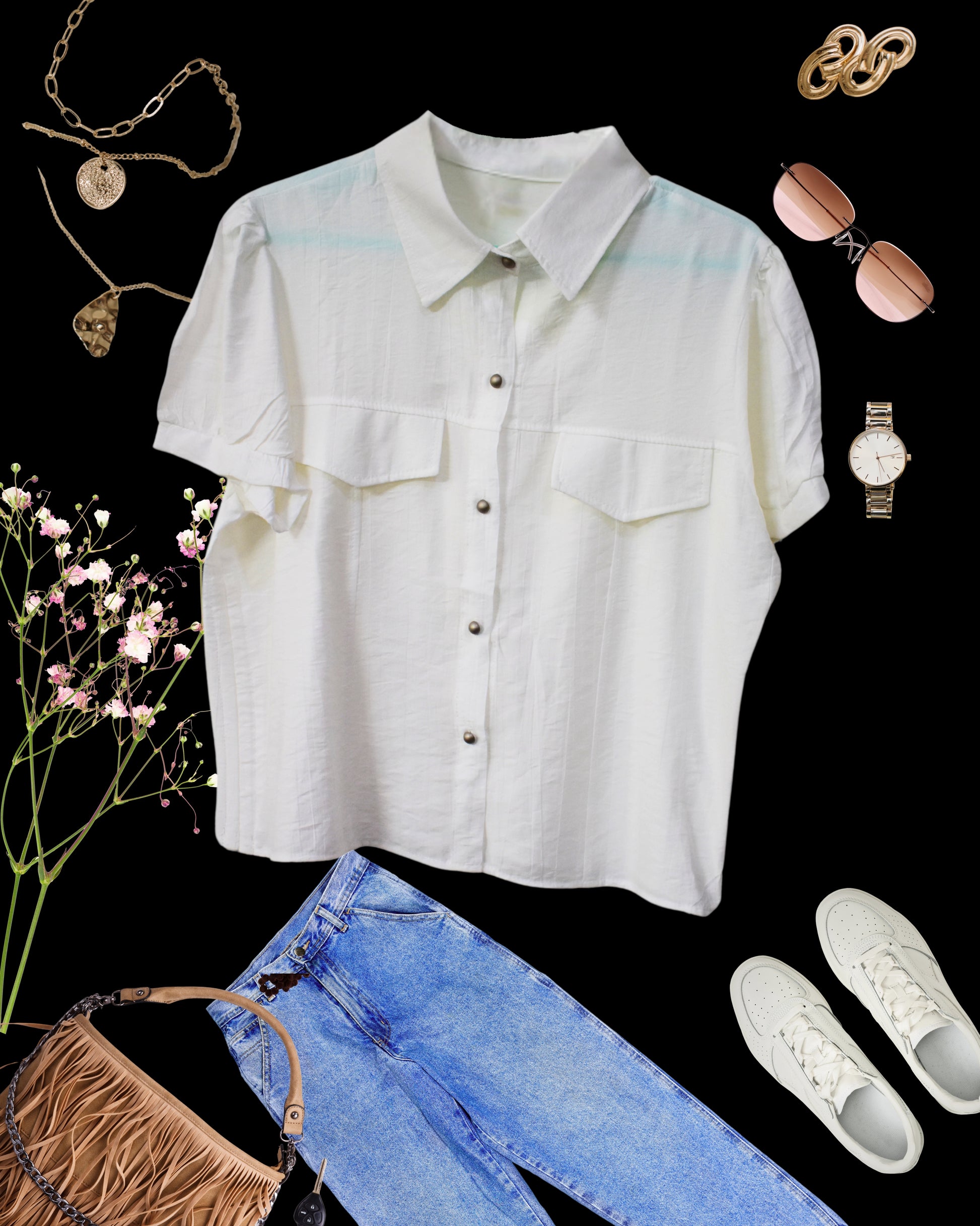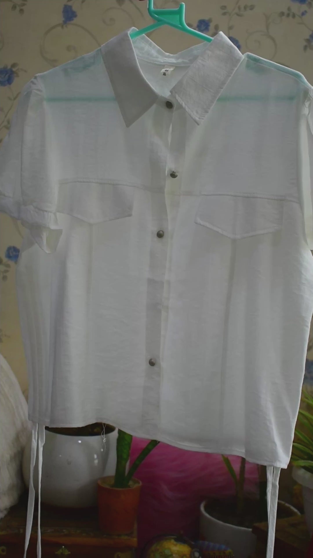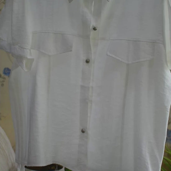 It is a cotton blend casual crop top with adjustable ties to style accordingly. It has slight puffed sleeves to give a chic look and the ties to give a hippie look. The fabric is extremely soft, flowy and breathable for this season. Size available is M. Colors are White, and Dusty Rose