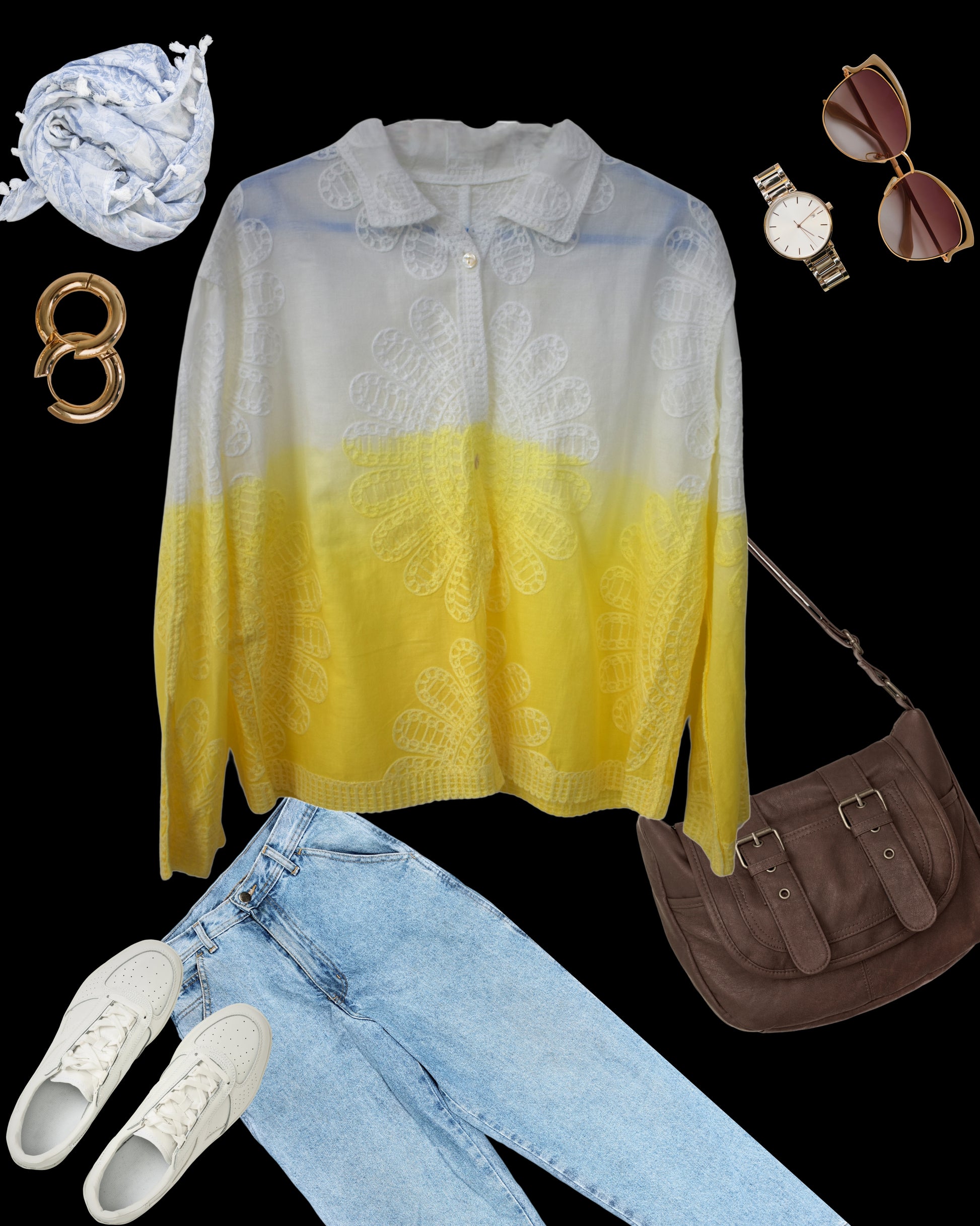 A rendition of our previous gradient chikankari cotton shirts, this one comes with a glazed cotton fabric, which gives it a silhouette. Fits up to 2XL size, ideal for M, L, XL, 2XL bodies. It is a beautiful shirt with vibrant colors- Chocolate, Pink, Yellow, and Blue.