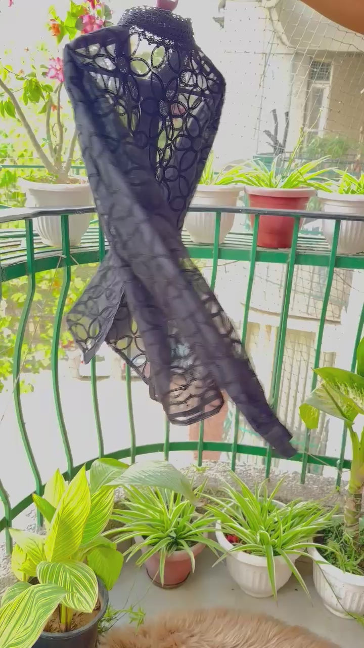 A touch of luxury: Glaze thread adds sparkle to organza. The flower embroidery by glaze thread on sheer organza making it elegant with smearing sophistication, also the lacy collar with pearl front buttons elevates your style and charm of perfect combination. Also, this shirt comes with the inner white slip, fit up to XL size.