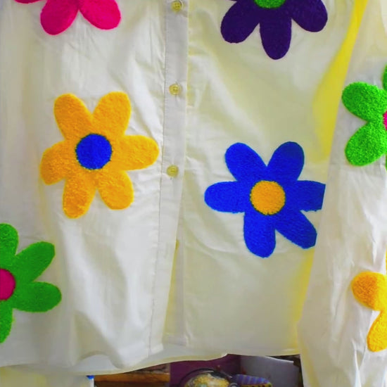 This is a makeover of our previous Rainbow top, this one comes with a pretty collar- a pinteresty summer surprise. Blended cotton fabric, with hand embroidery on the front. Vibrant colors embroidery makes it lively and cool. Fits up to 3XL, but ideal for a M, L body to give the loose crop fit. Color- Cream.