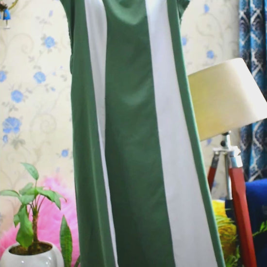 This one is a classic DP dress, with a straight fit, giving a slight A-line look, making it chic, elegant, well put up. Comes with a super stretchable elastic back, making it optimum for size M to XL. Style this dress for any event, be it a casual, or a formal one, this dress can carry both. The fabric used is blended cotton. It is available in 2 colors- Forest Green, and Taupe color. It comes with a belt to style accordingly. Fits up to XL size.