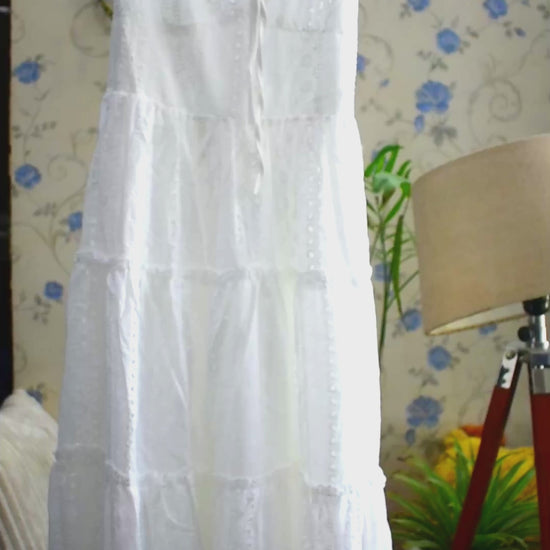 A classic cotton chikankari dress, which reminds you of "Lucknow ki galiyan". This dress has been made with pure love for the classic chikankari work, on a pure white cotton fabric with schiffli work. Comes with a little frill on the neckline, and tassels to style accordingly. Comes with attached lining. This one is a classic Shraddha Kapoor fit. Fits up to S size.